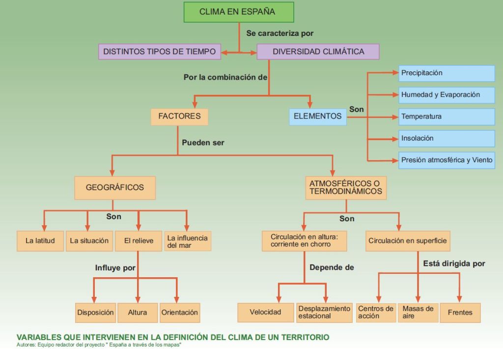 La atmósfera está en continuo movimiento, lo que se denomina circulación atmosférica. Concretamente los factores climáticos obedecen a las características geográficas influyentes en el clima y hay que distinguir: