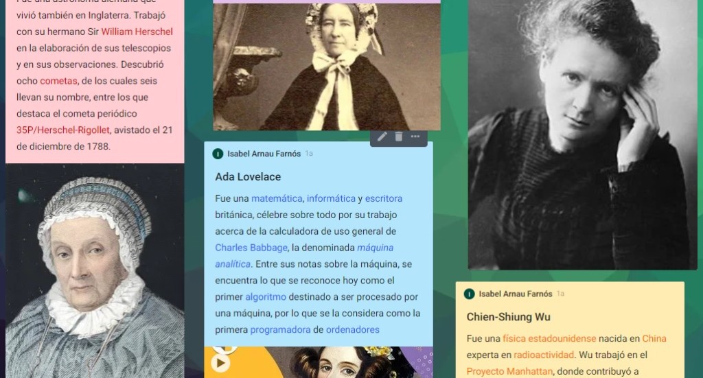 Investiga sobre otras mujeres que hayan tenido un papel relevante en los avances científicos a lo largo de la historia y compártelo para que llenemos el muro del siguiente Padlet con sus historias.